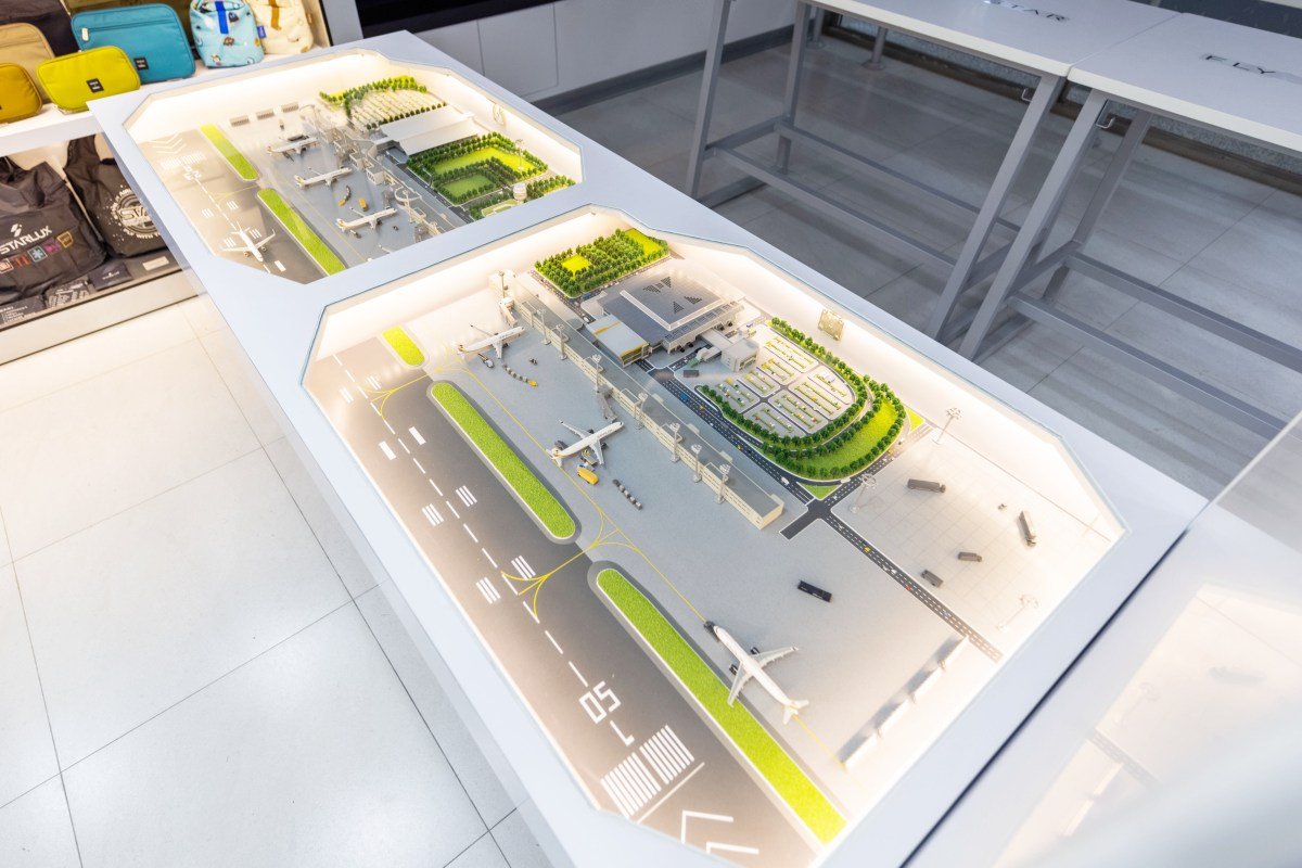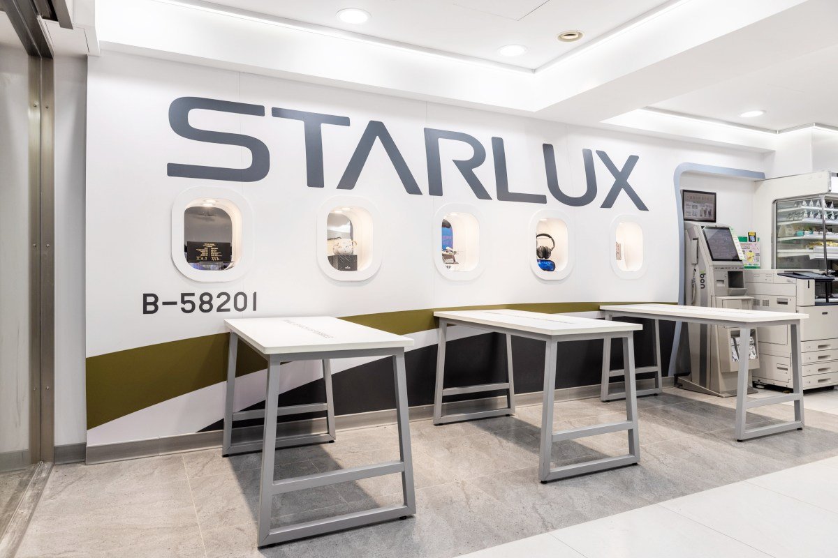 主題店內最大亮點就是休憩用餐區,牆面造型重現「星宇航空初號機B-58201」,並在窗戶中展示星宇首航紀念杯、登機封套、商務艙耳機及眼罩、菜單等週邊,還有擺放機場模型的主題桌,即使在平地,也有搭乘星宇航空的感受!