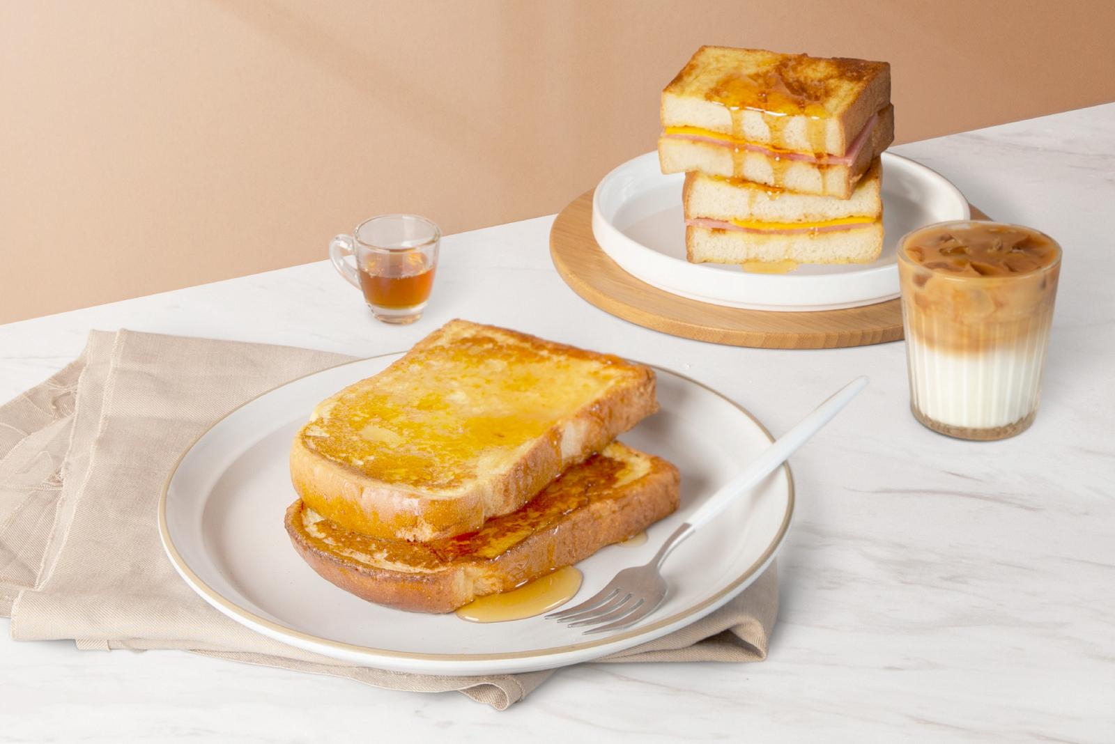 第一款主打款是「原味蜂蜜」吸飽牛奶的法式吐司,間的表面煎黃酥脆,但吐司更是柔軟到沒話說,再淋上溫潤可口的蜂蜜,早餐來一份實在太奢華!另一款鹹食口味「火腿起司」以歐洲咖啡館常見的這經典組合,法式吐司的蛋奶香氣包裹著火腿和起司,再外層淋上一層蜂蜜,甜鹹甜鹹的,簡單但足以讓人難以抗拒!