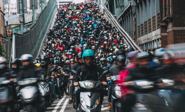 記得之前有外國朋友來台灣觀光,就指定說要到台北橋看有名的機車瀑布,沒想到台北橋這個奇景還多次登上國際版面。光是從這張照片就可以看出摩托車的普及率有多高,台灣的摩托車密度也創下世界第一的紀錄。台灣有2300萬人口, 摩托車的數量竟超過了1400萬輛。
