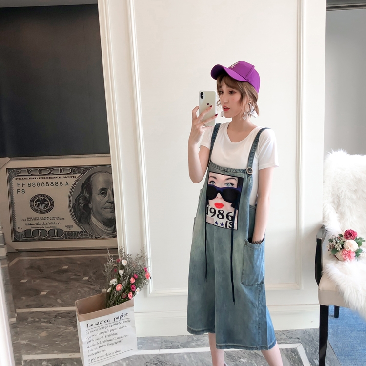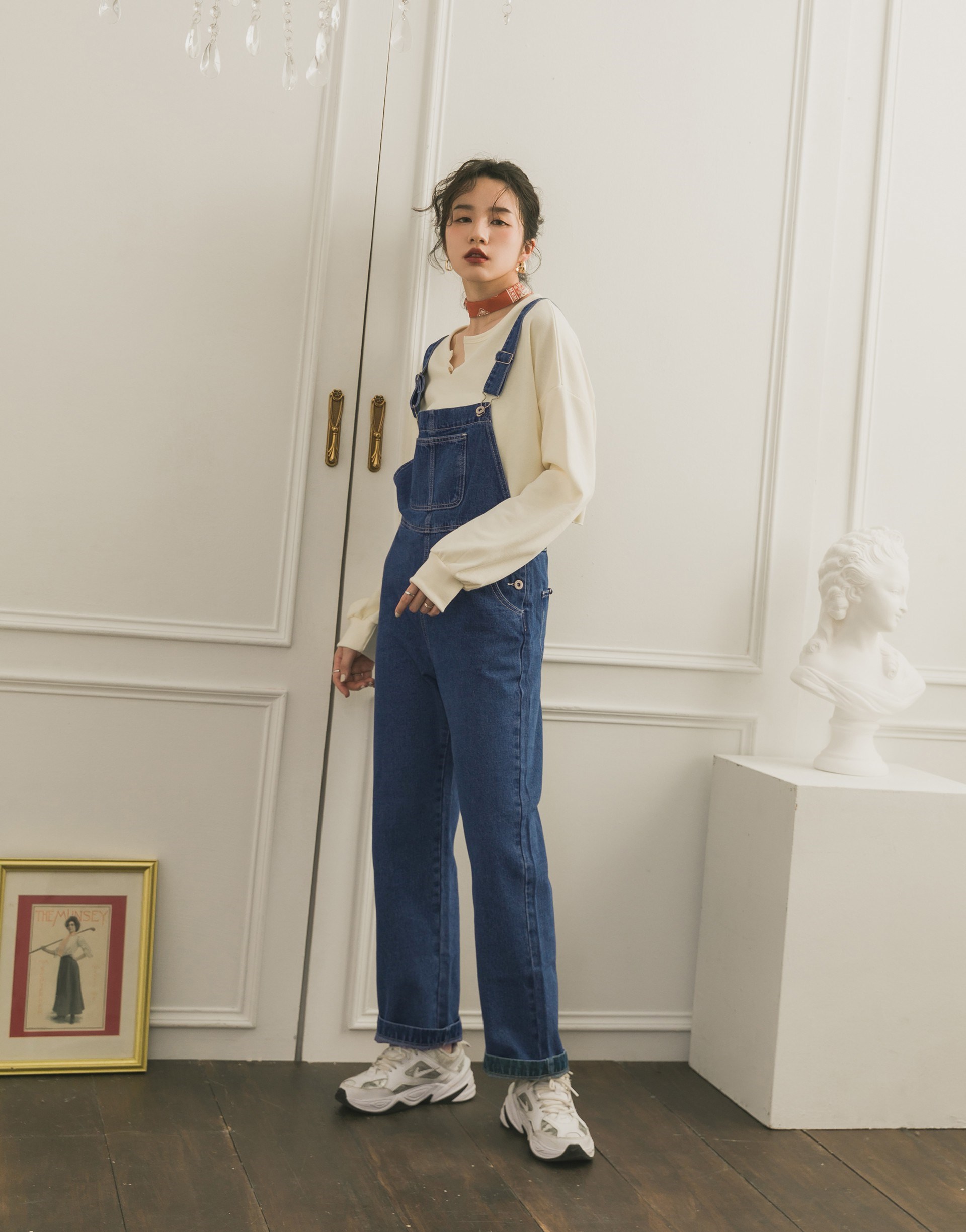 2. 牛仔吊帶褲超級百搭,擔心上衣怎麼搭配嗎?選淺色就對啦!