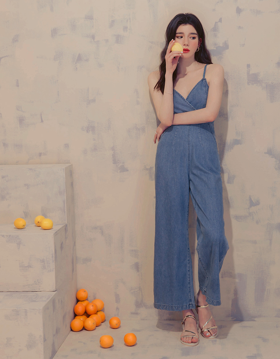 吊帶牛仔褲 #2:細肩交叉領牛仔吊帶褲