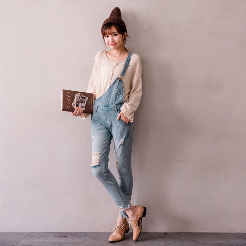 1. 選擇吊帶褲時,可針對自己身形挑選寬鬆或合身款,寬鬆款對於身材包容性大,適合腹部肉多或屁股圓潤的女孩;而合身款則適合身材比例均勻的水水,對小個子女生還說還有拉長腿部線條的效果喔!