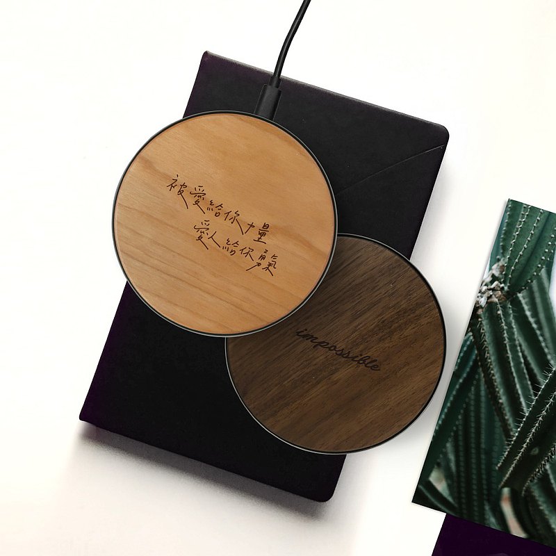 什麼!無線充電器竟然也能做成木頭材質?別懷疑,這款無線充電器的材質就是貨真價實的木頭,而且還有胡桃木、櫻桃木、楓木等不同的木頭種類可以選擇,而且上面還可以刻自己想刻的字,平常沒在充手機的時候,也是一種特別的居家擺飾哦~