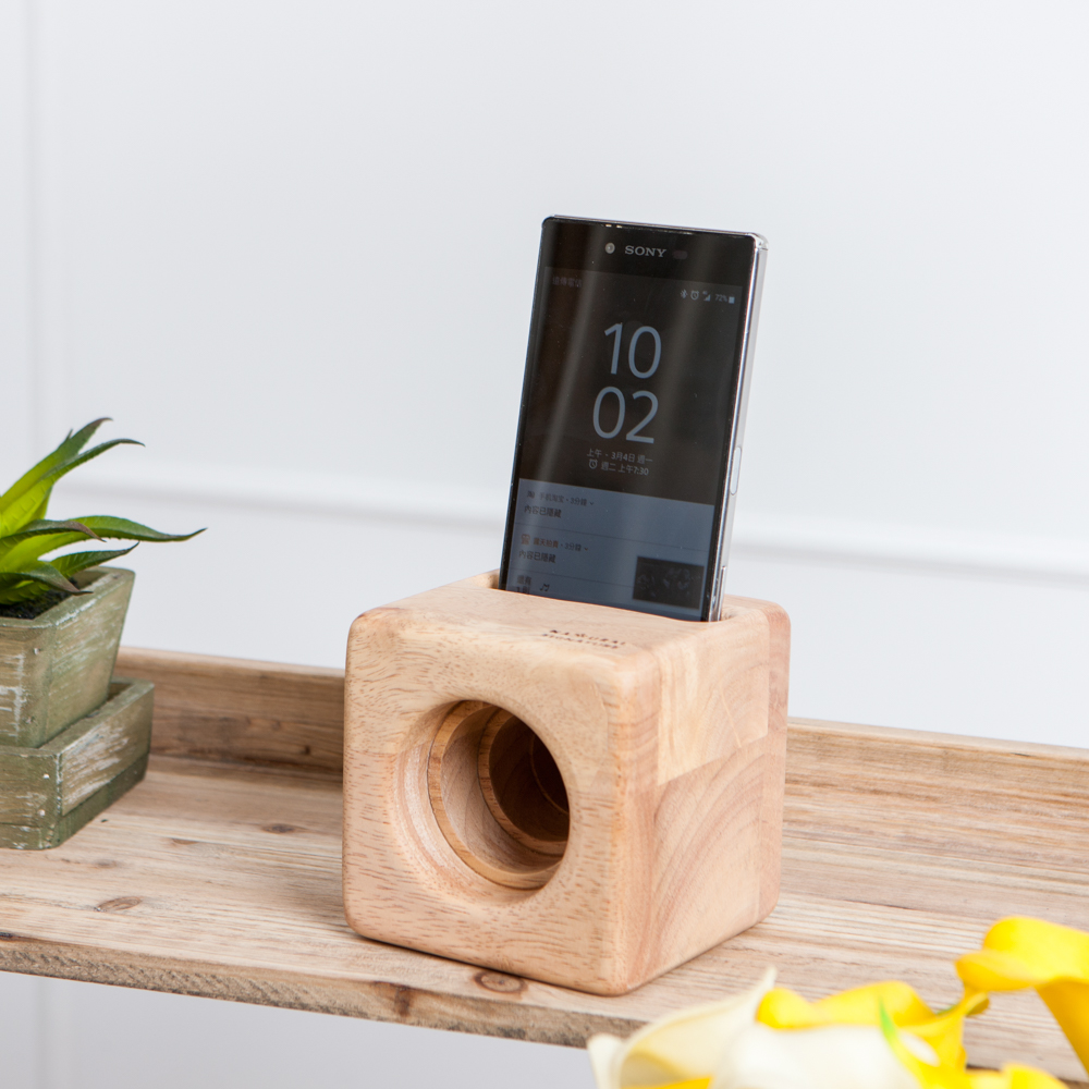 手機的外放喇叭通常都不會很大聲,這時候這款木質擴音座就派上用場啦!只要把手機放到擴音座中,完全不需要接任何電線,就可以透過擴音座的孔洞,達到擴音的效果,而且手機的聲音聽起來也會更加厚實動聽。