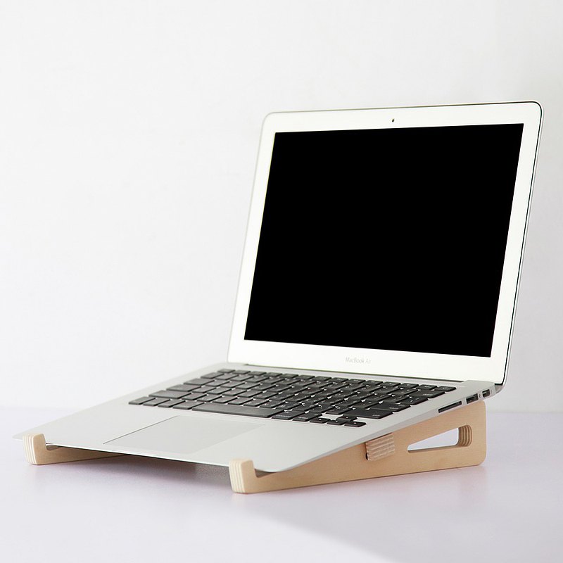 筆電的外殼大多是金屬材質,如果加上一個木質的筆電架,就能夠為冷冰冰的筆電增添幾分溫馨感。像這款木質筆電架摸起來質感很好,組裝方式也很簡單,把筆電架在上面,可以讓你在打字的時候更舒服,比較不會動不動就手痠哦!