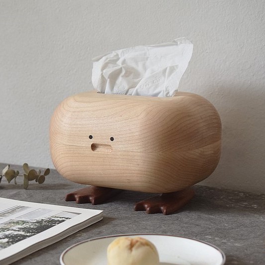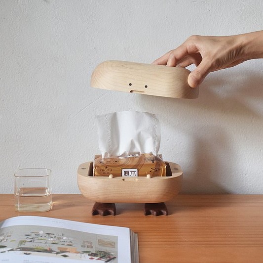 居家品牌「山舍原創」的產品都是以木頭為主,其中這款木質面紙盒真的是太可愛了!面紙盒上不只有著兩顆圓圓的小眼睛,而且仔細一看,這款面紙盒竟然還有一雙大大的腳,看起來就像是一隻呆萌的面紙盒小怪獸。