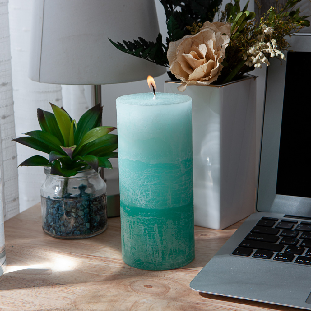 蠟燭不只在停電的時候很好用,平常也能當作居家擺飾,像這款蠟燭就以「微風海浪」為概念,做出看起來有些淡綠色的漸層感,彷彿把海邊那種微風吹來的度假感,通通融入到這款蠟燭中,擺在家裡真的很夢幻!