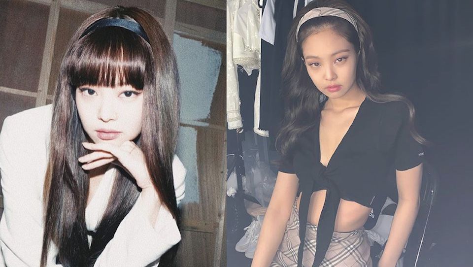 Jennie的深髮色,搭配上低明度或大地色格紋髮帶,看起來像極洋娃娃,更精緻漂亮。