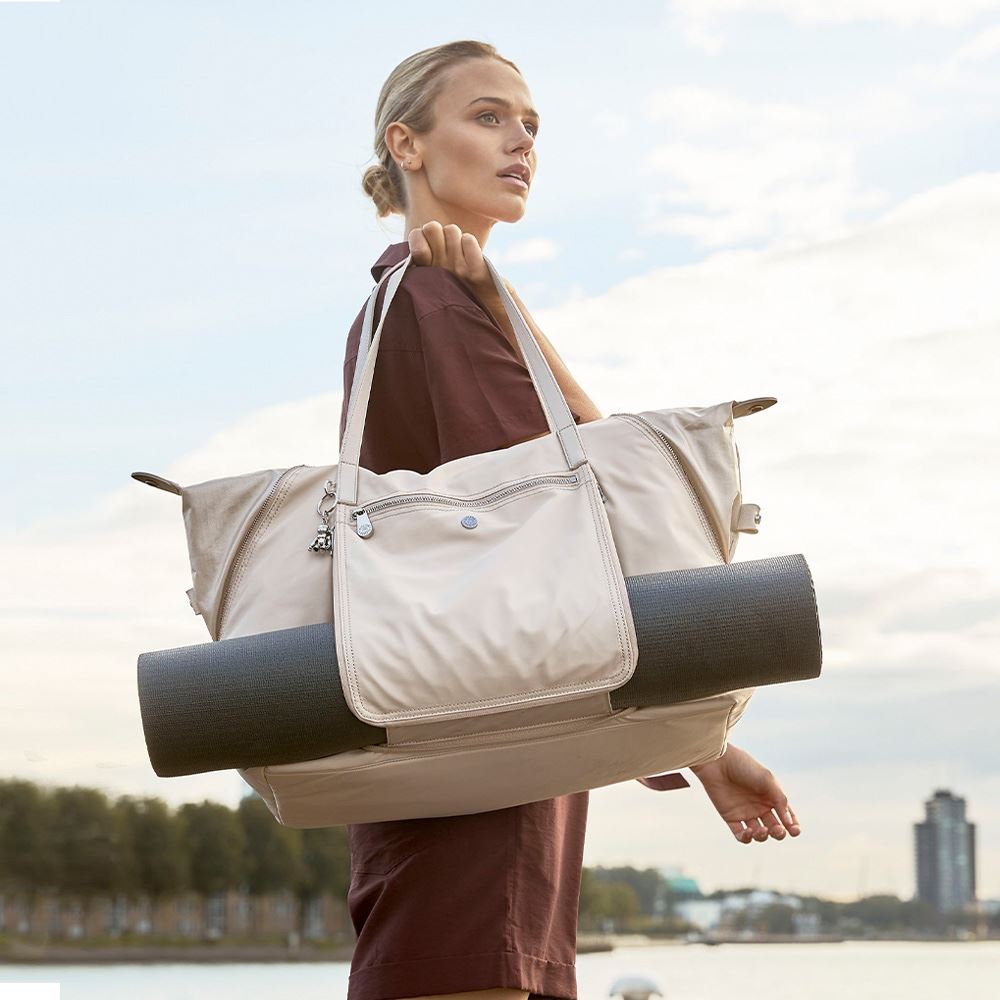 Kipling x 永樂宮聯名系列,以「瑞賀踏雲」為主題傳承東方文化底蘊,將典雅壁畫融合蛻變成東方獨特韻味的藝術品,讓你「袋」著遨遊。ART M為一款大型的尼龍旅行手提袋,兩側附有可調節拉鍊,能自由調整包型,適合周末小旅行、平日健身等各種休閒活動時背戴,並附有滑順的大拉鍊與實用的行李箱拉桿套,可輕易的套於任何行李箱拉桿上,輕鬆「袋」著走。