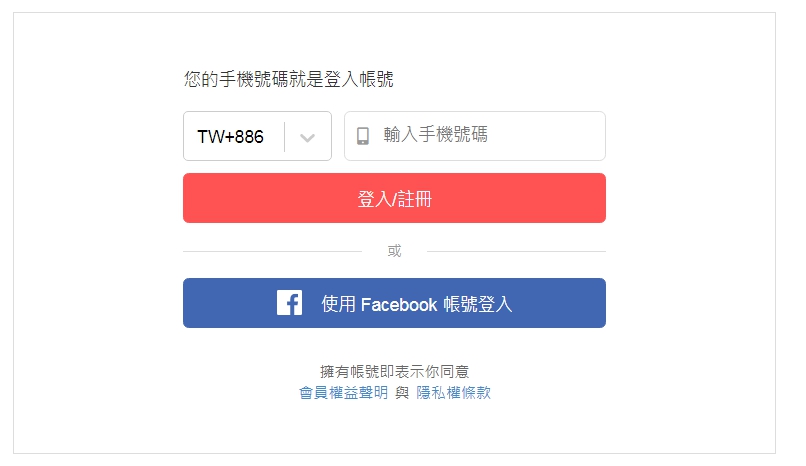 成為會員,用手機號碼就可以簡單註冊,也可透過FB快速註冊。