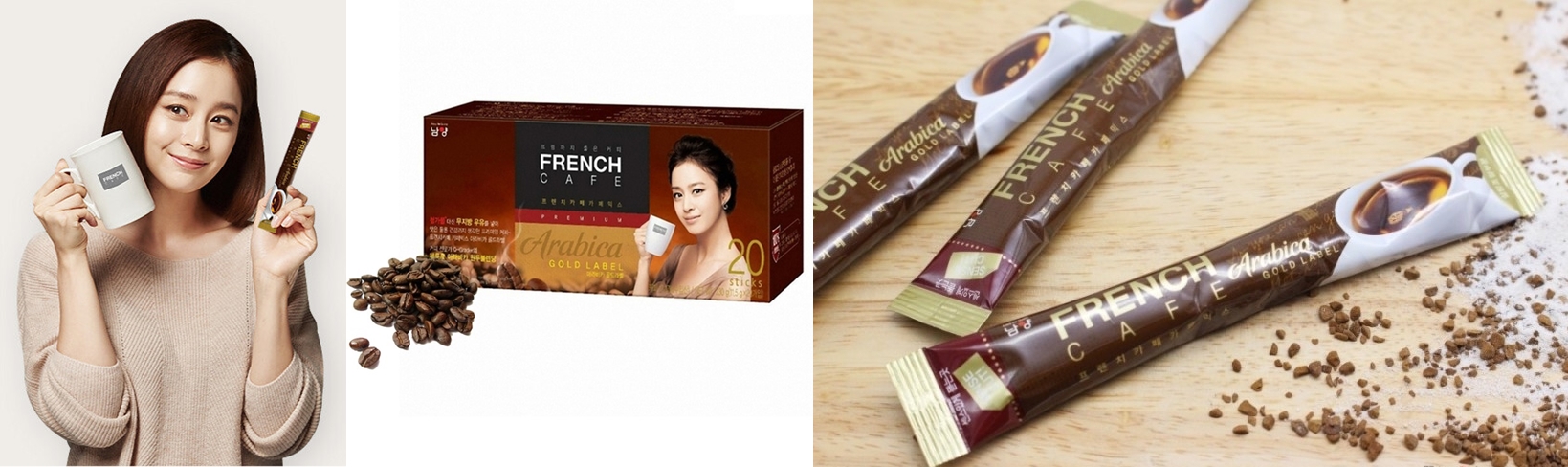 氣質女神金泰熙代言的Namyang法式三合一咖啡,選用坦尚尼亞上等阿拉比卡咖啡豆,並添加1A特級脫脂牛奶,讓喜愛喝咖啡的人健康無負擔。採用FD太空人鎖鮮技術,不添加合成香料也擁有媲美手工咖啡的研磨香氣,他們家的咖啡更擁有「隨身攜帶的咖啡廳」美譽。