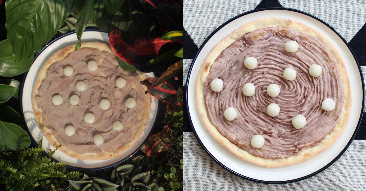 Google超過千則評論,分數高達4.4顆星的Hand on the pizza 手在比薩,手工現做的披薩獲得許多好評,除了經典口味以外特殊口味也少不了,這款「只想芋見泥披薩」是用香濃綿密的芋泥搭配烤過的白湯圓,創意口味讓人既期待又怕受傷害,芋泥控有沒有心動呀?