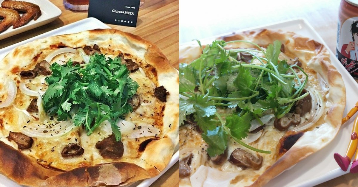 不讓必勝客專美於前,Copoka PIZZA其實早就有推出「大腸麵線」口味披薩,用台式醬油+醬滷大腸+洋蔥+起司,最後撒上大量香菜打造台式小吃口味。看看這上面毫不手軟的香菜,害怕香菜的人先倒退三步了吧(笑),Copoka PIZZA的老闆時常在臉書熱情的和客人互動,大家如果有想到什麼創意口味,或許也可以和老闆許願哦~