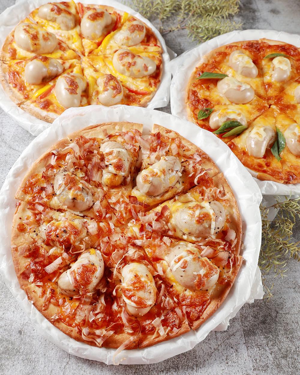 不只這樣,他們家特殊口味可真不少,冬季限定的我愛小草莓披薩、麻辣鴨血披薩(麻辣鴨血????)都超狂,還曾經出過水煎包披薩、東石鮮蚵披薩,愛嚐鮮、挑戰的妞妞可以多關注他們,說不定哪天老闆又會心血來潮研發更不得了的口味啦~