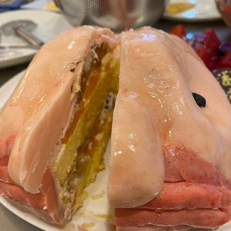 (內餡長這樣,就算知道本體是蛋糕我可能吃不下去...)