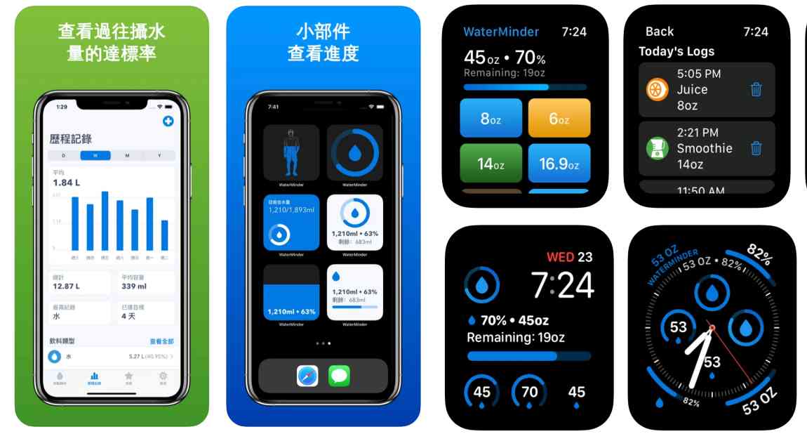 關於喝水的App可不能錯過「WaterMinder」,透過使用者喝水來設定自己的人形圖,一眼就能清楚看見一天的攝取量,大方直覺的使用介面和喝水指南,完成提醒後的指標讓人非常有成就感。能與 iPhone 的「健康」App 同步,流暢且更具系統性,建立喝水好習慣一點都不難。