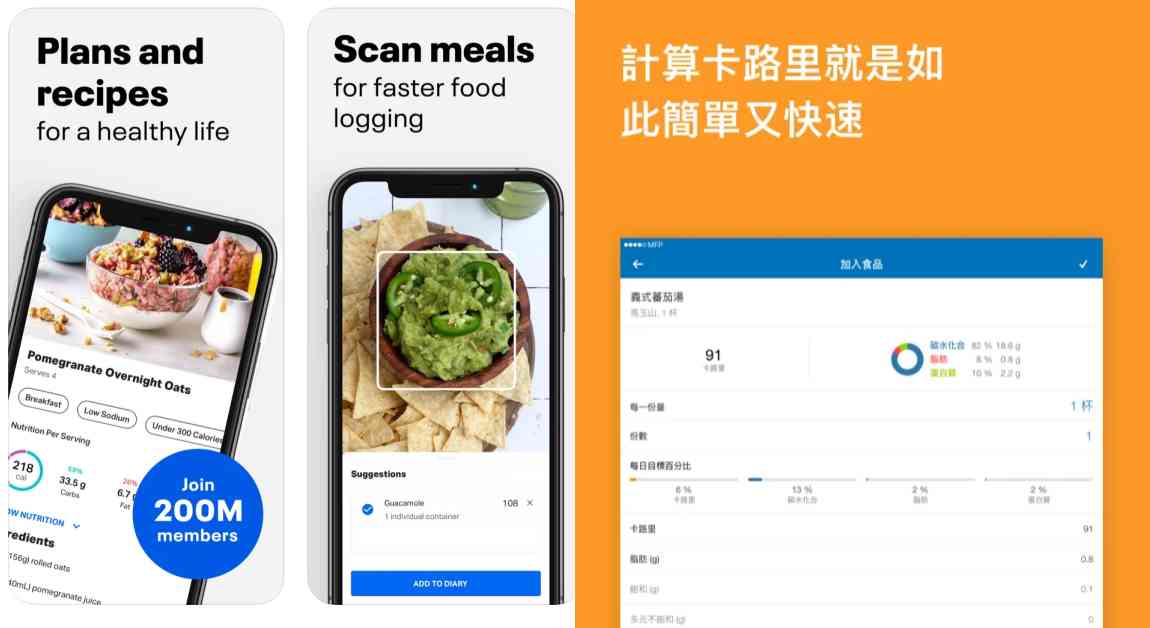「MyFitness Pal」擁有超過三百萬種食品資料庫,輕鬆一掃食物包裝條碼就能記錄自己吃下什麼,同步輸入運動類型與時間,想減重、雕塑身材還是更無負擔的生活型態,完整的日記追蹤,提供營養師認證的膳食管理和建議。
