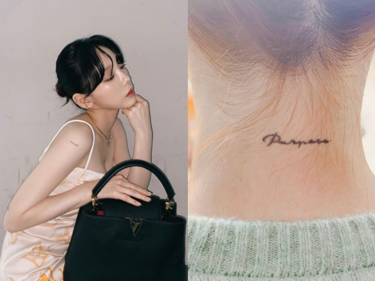 太妍頸後方的「Purpose」,代表著「不希望活得虛無且沒有意義」,以簡約且細膩的文字呈現的刺青,獨特卻不難駕馭的風格也是大家可此拿來參考的唷!