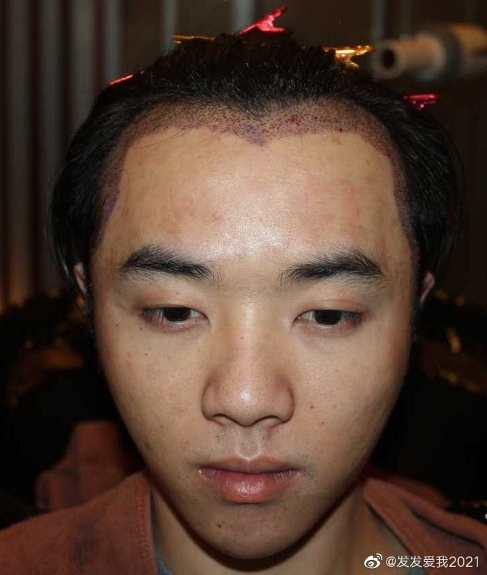 照片中的人明顯是華晨宇,更在前額位置做了植髮的療程,沒想到就連現在大家看到的髮量都是假的~