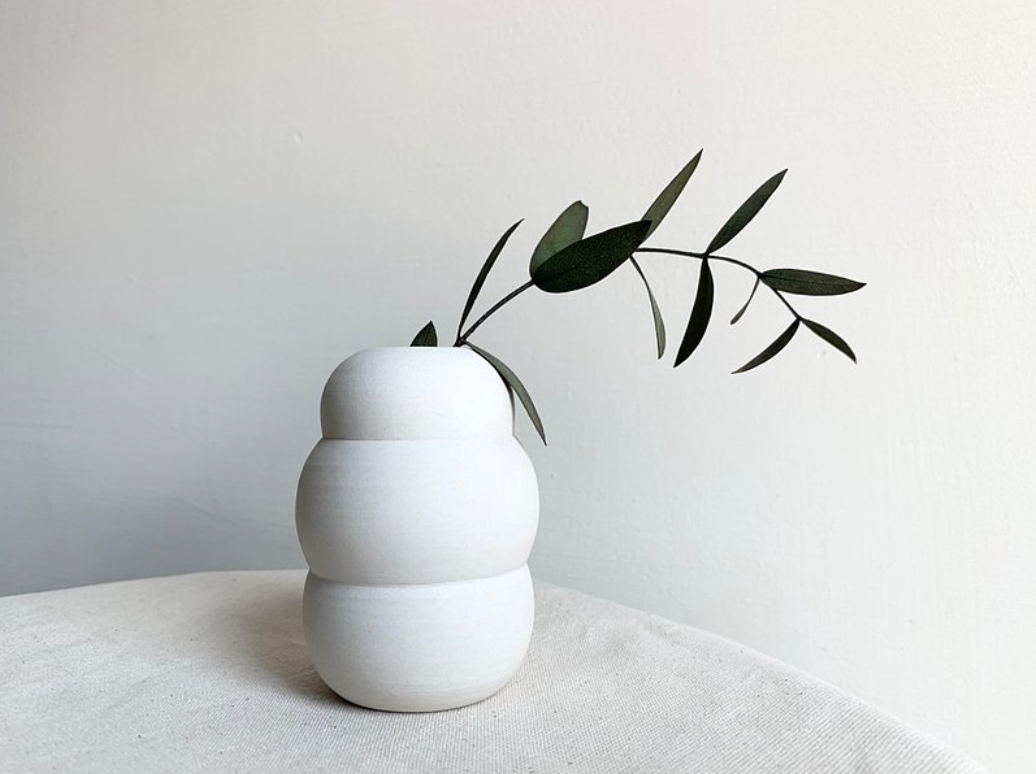 花卉植物除了還有療癒的作用!看看這個造型有點像鹽可頌澎澎胖胖的形狀是不是就非常療癒呀~純白瓷土手拉坯製成,瓶內上透明釉藥保護,瓶身則保留瓷土原始色澤,搭配不同的綠葉呈現,為室內製造一份日式舒服的悠閒感。