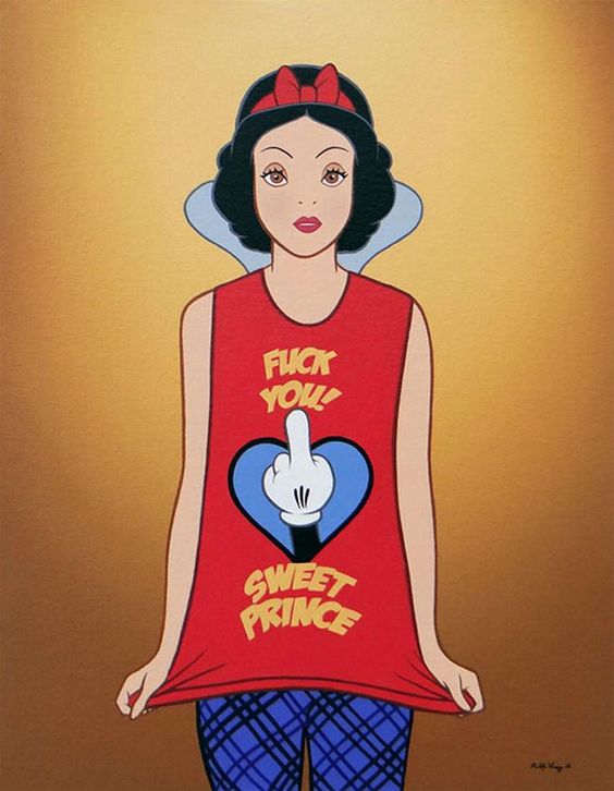 4. 白雪公主穿上米奇招牌白手套中指Tshirt,配上厭世臉真的超對味!