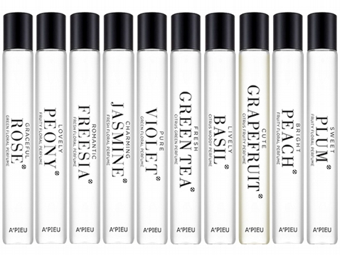 前面為大家介紹許多專櫃品牌的香水筆,最後一款將為大家介紹有超高CP值著稱的A'PIEU韓國美妝品牌,共有十種以上的香水款式,而最受歡迎的分別為茉莉花、牡丹、紫羅蘭、小蒼蘭香味,雖然滾珠香水都以淡香為主,但此款建議於約會前30分鐘就擦拭於手腕、耳後喔,才能更自然不明顯補香的自然香氣喔!