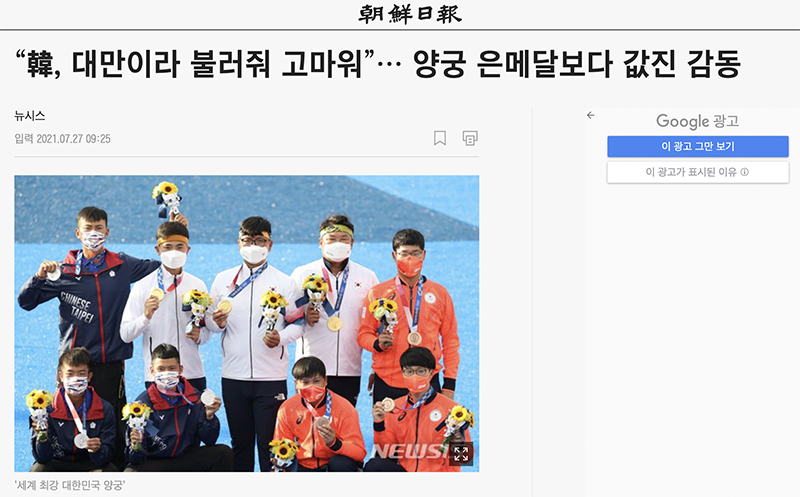 這場比賽不只讓台灣粉絲坐不住,更是掀起韓國唯一鎖定的比賽。對於韓國來說「射箭」彷彿就是國民運動一般,在國際大型運動賽事上,總會讓人聞風喪膽。由老大哥吳真赫領軍金濟德、金優鎮拿下金牌寶座,這也堪稱最強黃金射箭組合。其中,第二局更射下60分滿分的成績,完全讓人看傻眼,這根本是神術!此外,韓媒更在報導寫下「『謝謝你叫我台灣』,比起銀牌更有價值的事」,會後訪問到了韓國選手,最讓他們印象深刻的就是「台灣」。