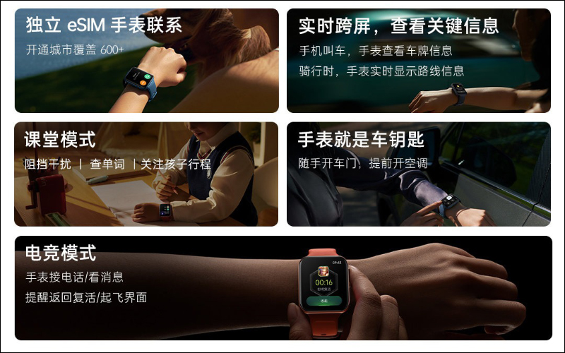 OPPO Watch 2 內建 GPS 、支持 5ATM 防水機能,並提供 eSIM 版本和藍牙版本供選擇。特別的是 OPPO Watch 2 這次加入的「電競模式」,一旦開啟後所有手機的通知都會轉移到手錶端,讓遊戲同時也不怕錯過訊息和來電。在 OPPO Watch 2也加入課堂模式,能在學生上課時阻擋通知,也能用手表查詢單字等功能。使用者也能透過 OPPO Watch 2 實現遠端遙控拍照等方便功能。