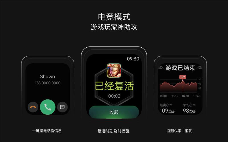在電競模式開啟後,除了可用 OPPO Watch 2 接收提醒,也能用利用手錶接聽電話,針對部分遊戲也有對應的提醒功能。