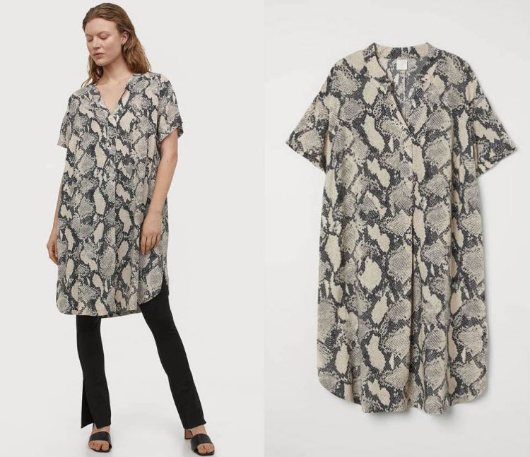 過去在秋冬常見的動物紋,在今年春夏亦成為趨勢之一!H&M運用襯衫式剪裁設計的這件件洋裝,搭配蟒神紋印花,讓整體設計變得更有個性外,加上無腰身的剪裁,如果擔心腰部不夠纖細的女孩,這件洋裝絕對可以讓妳把肉都藏起來。