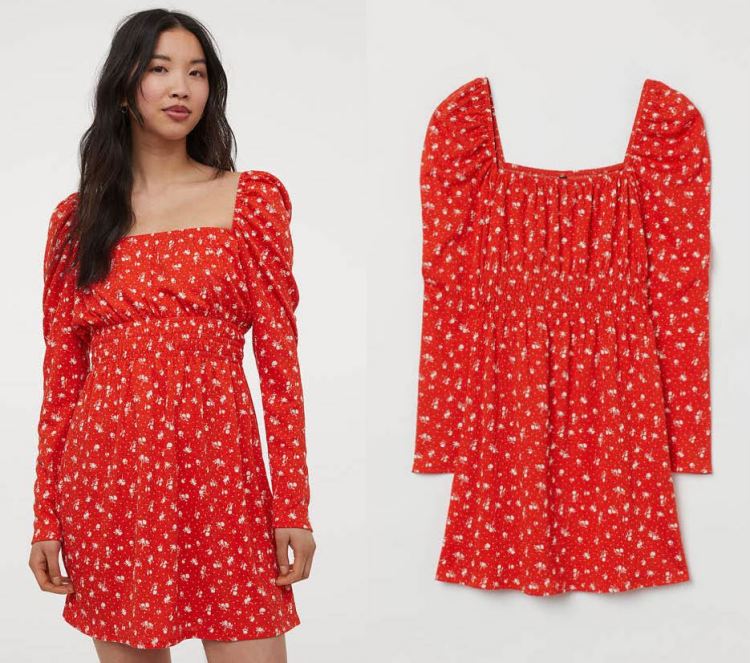 方領的設計不可以給人一種復古感,同時還能創造出優雅的氣質!這款紅色洋裝運用方領的設計,加上澎澎袖的剪裁,讓女孩宛如從老美劇中走出來一樣甜美可愛。