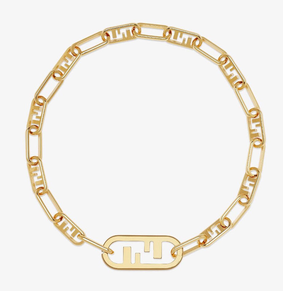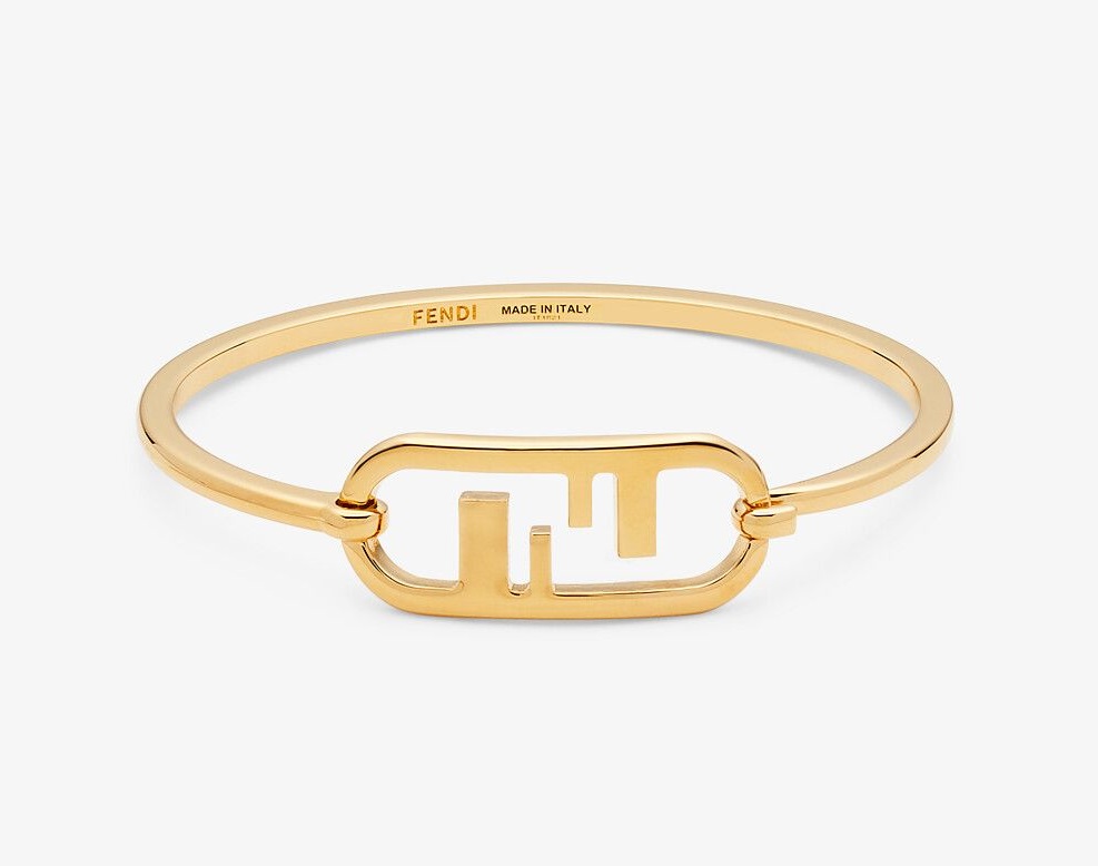 如果覺得一整圈的橢圓型Logo太耀眼,Fendi也貼心地推出造型更內斂優雅的手鐲。採用單環鍍金手環為主體,在手腕上方點綴O’Lock標誌,透過簡約百搭的設計創造多層次疊戴的可能性,讓你盡情展現個人風格,創造視覺豐富度。