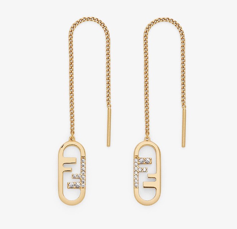 同樣也是走低調簡約路線的吊墜耳環,以Fendi O’Lock吊墜搭配金屬細鏈,可以透過個人喜好去挑整耳環的長度和前後的層次落差。而這種能隨著步態搖晃的吊墜耳環,本身就非常具有女人味的款式,因此我們推薦大家可以選擇有白色水晶裝飾的設計,用來搭配各類甜美風洋裝。