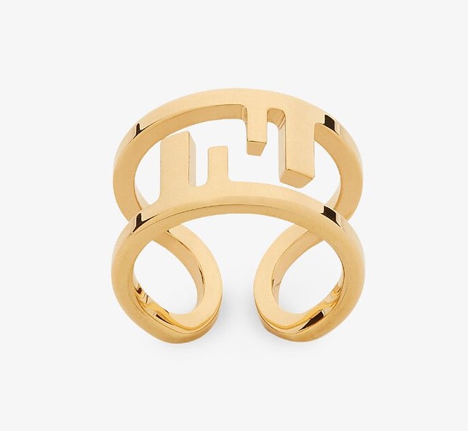 不單單只有基本款橢圓、扁平的設計,Fendi也將O’Lock圖案沿著手指的弧度彎曲成造型感十足的寬版戒指。除了寬版設計之外,亦可搭配另一款線條感相對沒有那麼強烈的窄細戒混搭,但切記一定要掌握One-Tone原則才不會又金有銀,顯得太過眼花撩亂。
