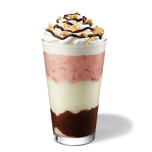 延續「甜點式飲品」的研發概念,「那不勒斯星冰樂」靈感來源是義大利那不勒斯的經典冰淇淋點心,結合草莓、香草和巧克力三種元素,最上層的純白鮮奶油上,以香濃巧克力甜醬和鬆餅餅乾點綴,妞妞們一次就可以享受到酸甜草莓、芳香香草和濃醇巧克力風味呢!(註:外送平台為維持飲品最佳風味,此飲品將不提供鮮奶油)