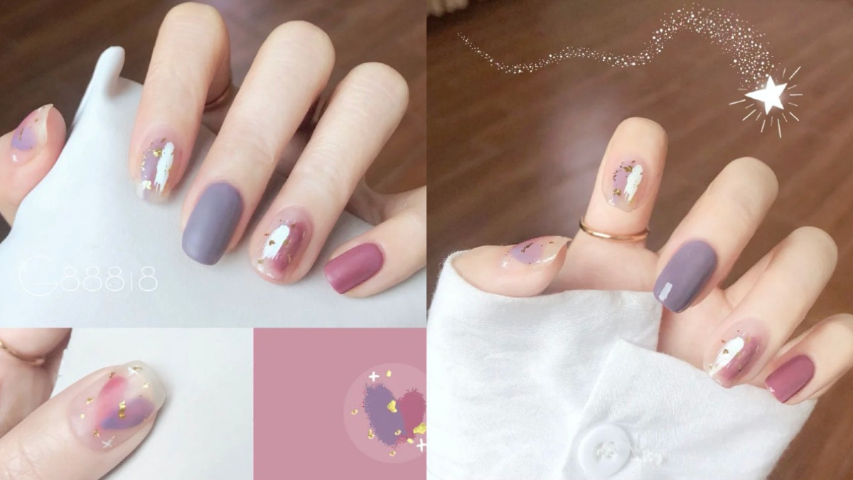 喜歡簡約風格的女孩,則可以從「愛心刷色」款式開始入手!簡約的紫白跳色加上大拇指愛心刷色,低調又不失溫柔感,也可以搭配亮片或是霧面元素,帶來另一種質感。