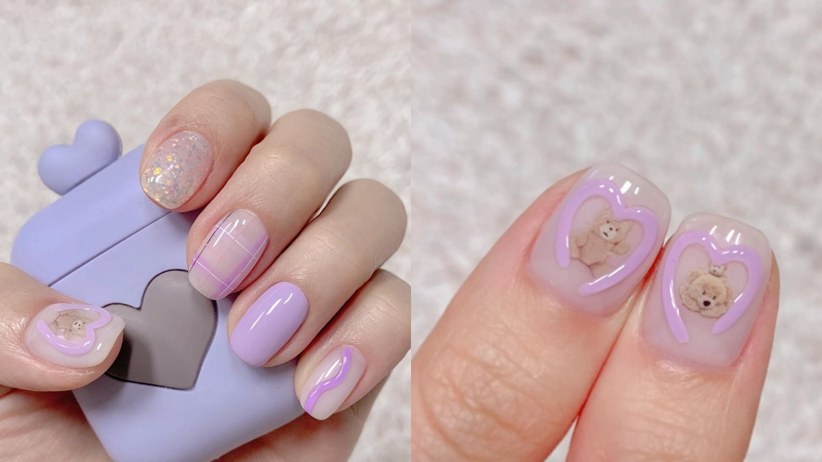 忙碌的生活實在太令人心煩?不妨來款「童趣小熊」美甲喚醒初心,夢幻香芋紫、泰迪小熊圖案與格紋設計完美融合,再搭配上立體愛心與閃片,畫面都瞬間明亮起來了,立刻擺脫暗沉雙手~