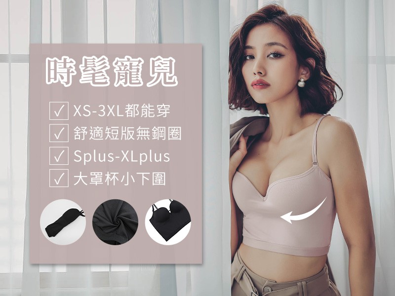 大胸女孩夏天不想穿內衣還可以選擇myBRA「時髦寵兒」短版Bratop!比Onesize或基本尺寸的市售Bratop多了更廣的尺寸範圍,從XS到3XL都有!而且貼心的為大罩杯小下圍的女生做 S plus ~XL plus尺寸,再也不用擔心找不到適合的尺寸了
