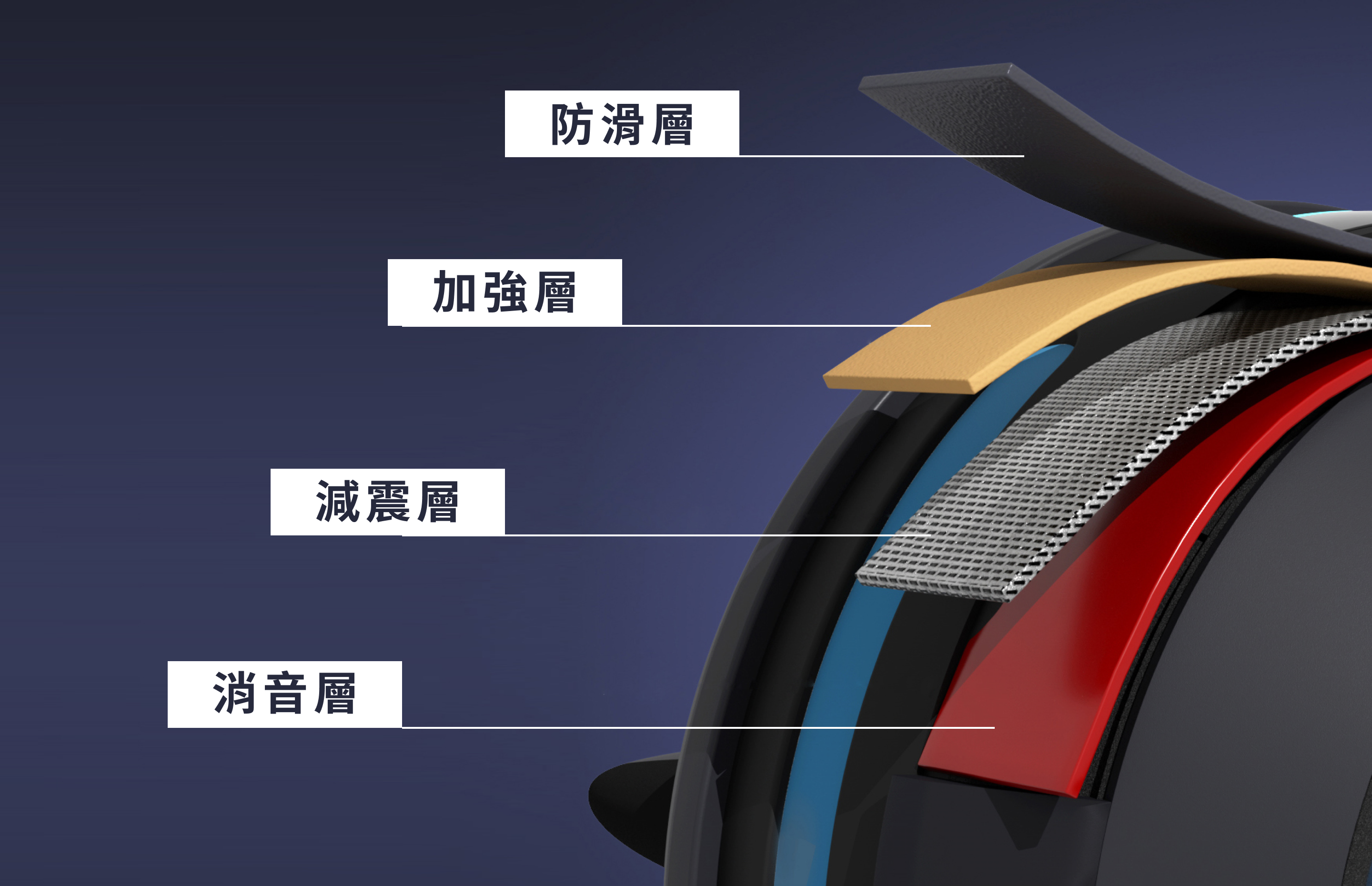 內部更採用了防滑、減震、消音的多層次工法,除了保障使用者的運動安全,最外層更精選不傷地板的材質,滾動時幾乎沒有噪音,讓你放心的在家運動不打擾鄰居(出力時的鬼吼鬼叫就不在此限):
