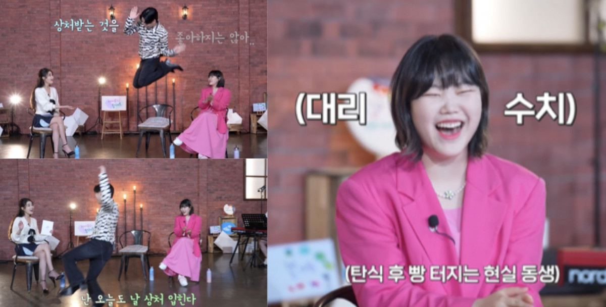 而演唱完畢後,IU更提到關於這首歌所傳達的沈重訊息,不知道自己會不會唱得太過歡快,而燦赫便說到這首歌其實本來應該要「邊蹦邊跳」的,更示範隨即從椅子上快速跳下,但剛落腳的他卻重心不穩摔了個四腳朝天,讓全場包括攝影團隊和樂隊們都笑翻啦!而著急連忙將燦赫扶起的IU,更是跟身旁不為所動大笑的秀賢形成對比,讓韓網喻為就是「朋友與親妹妹的差別」啊!