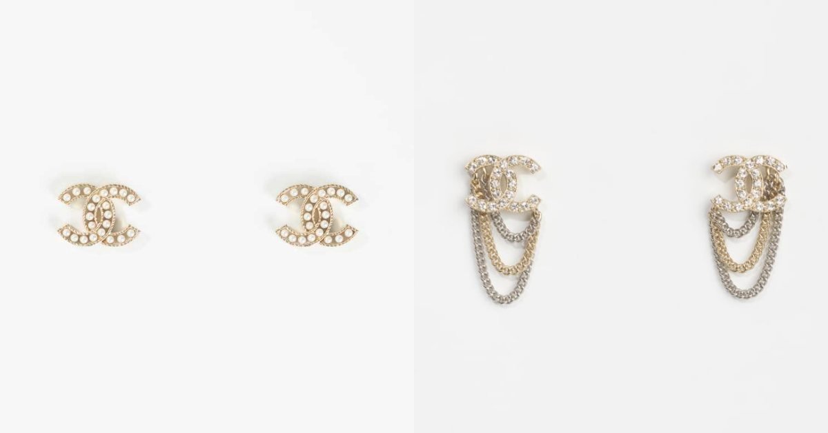 經典的雙C標誌是CHANEL每季飾品都必備的元素,妞妞們也可以參考金色搭配鑲珍珠的款式,戴上珍珠呈現的是低調優雅的質感,另一款以滿滿水鑽鑲嵌搭配金銀垂墜鏈飾的款式造型感更豐富。