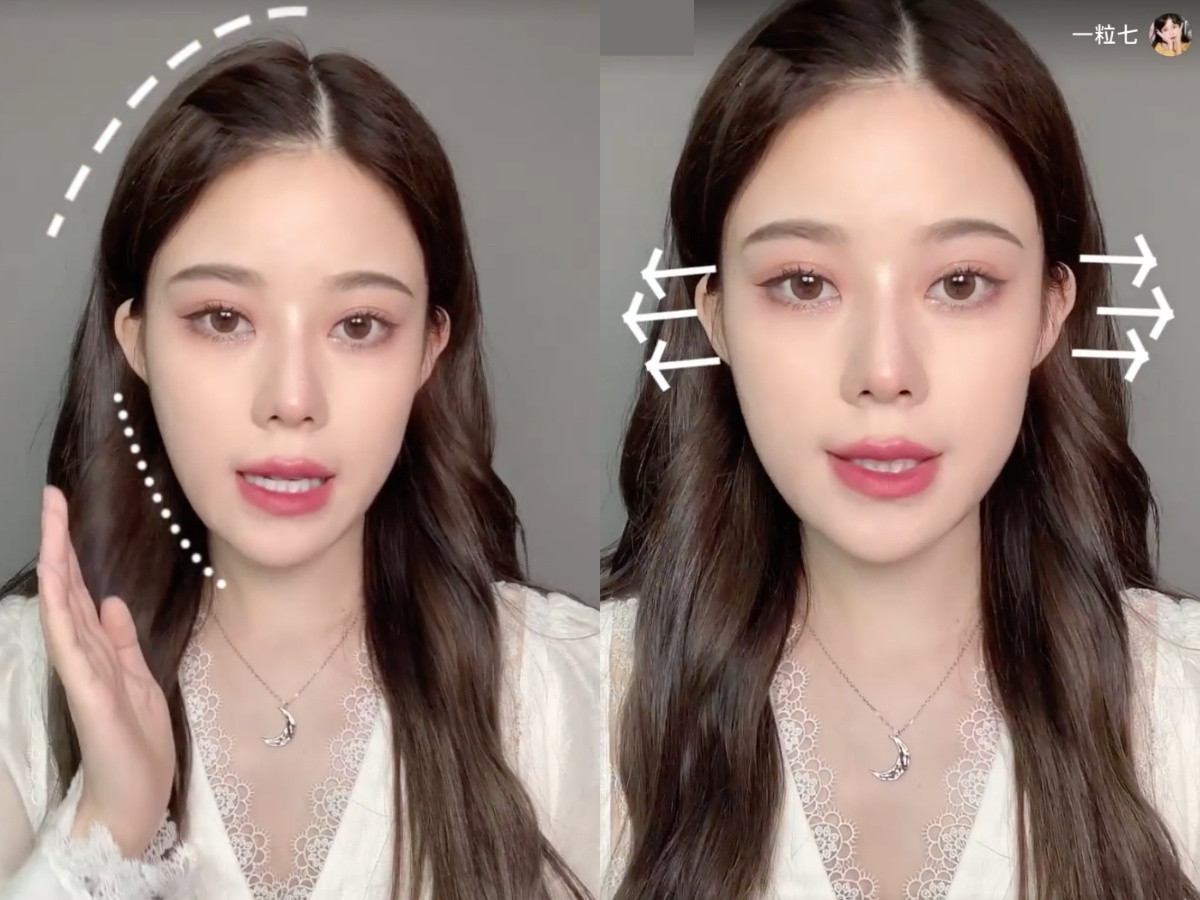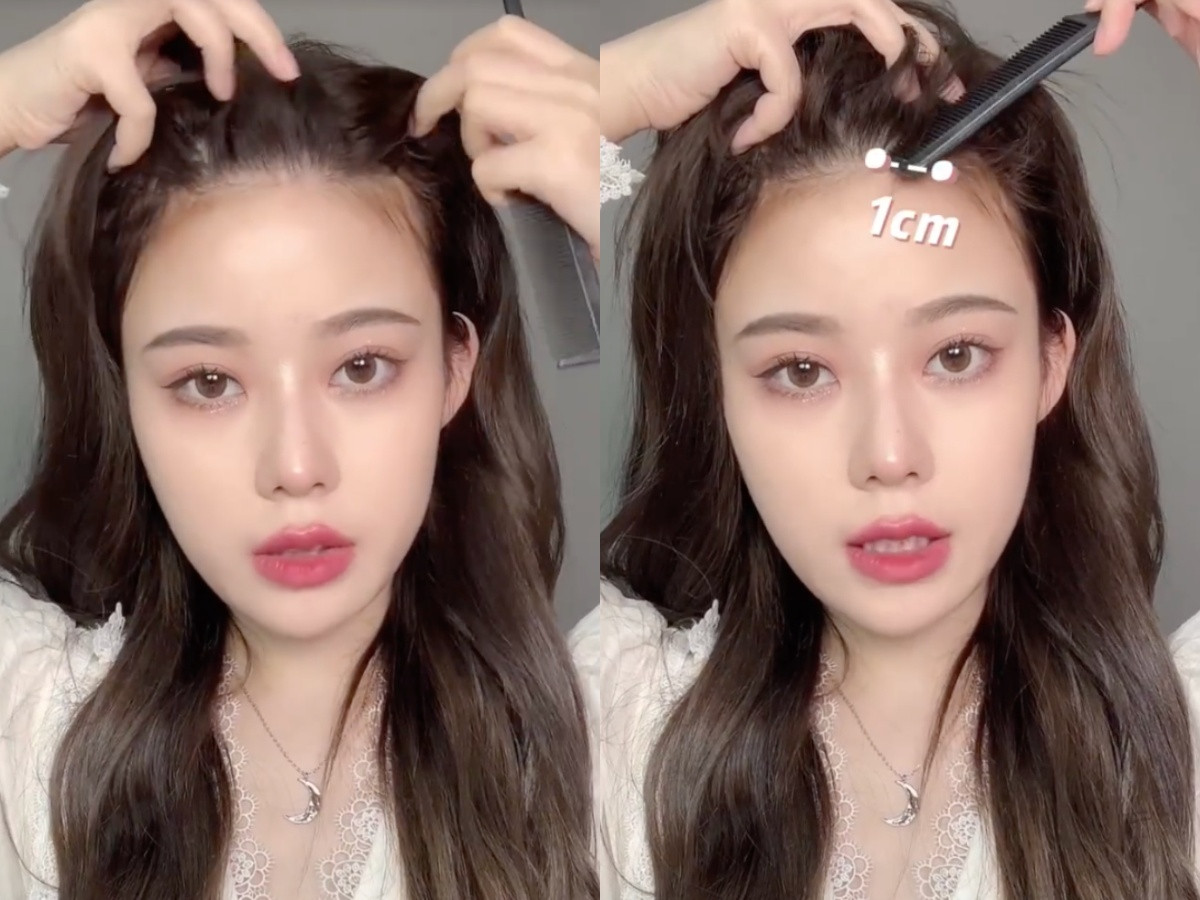 不過一般中分/旁分瀏海,很容易出現髮根扁塌與貼額頭的問題,如果想讓造型更好看並有瘦臉效果,就還要加上「7字線」的瀏海定位細節。
