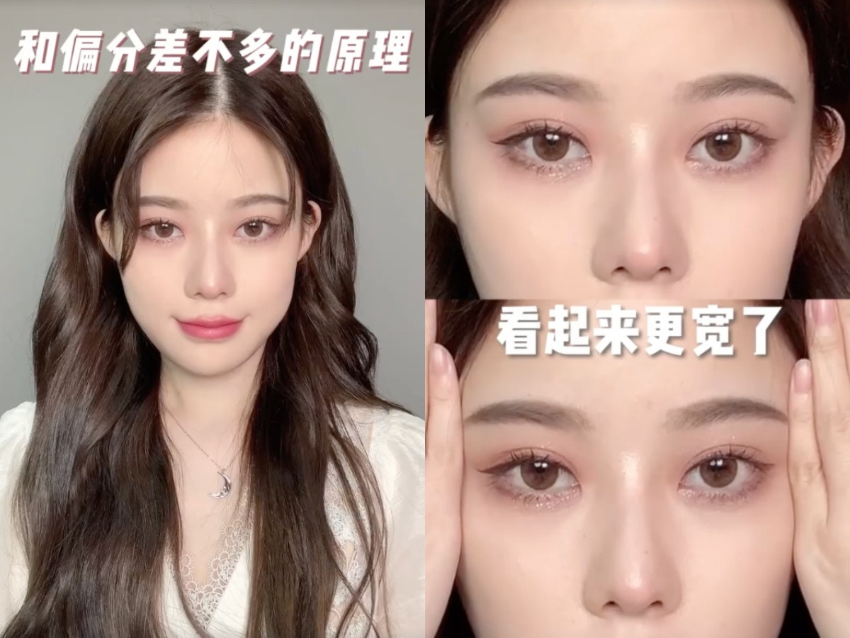 想讓瀏海有更多亮點,可以試試看讓瀏海以3:7來做碎髮分線,不過這樣的瀏海分法因為會遮擋到眼角外的肌膚,因此「不適合眼距寬」的朋友嘗試(下左圖),會容易讓眼距更更更寬唷!