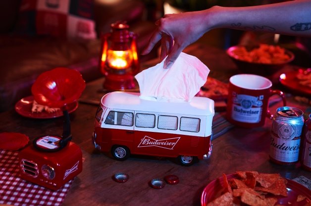 身為戶外派的妞妞們,百威這次也集結許多古董老物,並融合創新的功能,首推「復古風鏡安全帽」,使用消光材質,搭配有型的護目風鏡,非常適合有在騎車的大家;「復古巴士造型面紙盒」做成公車外觀,簡單的面紙盒也能搖身一變成桌上的最美擺飾!