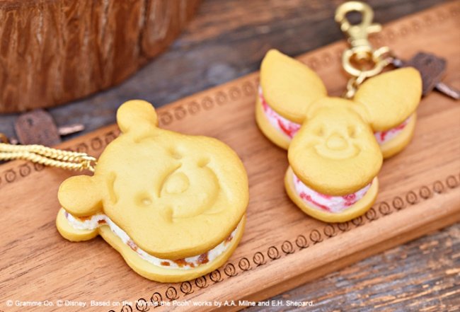 熱騰騰的小熊維尼、小豬餅乾出爐囉~神還原2隻小可愛的特寫大頭,被製作成「夾心冰淇淋項鍊以及鑰匙扣環」啦!蓬鬆的餅乾質感完美呈現,裡面的夾心還口味不一樣,維尼的是他自己也愛的蜂蜜焦糖,而小豬則是酸甜草莓口味。