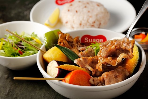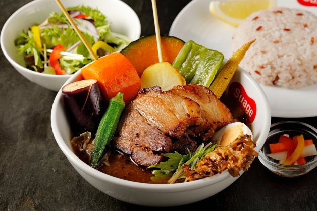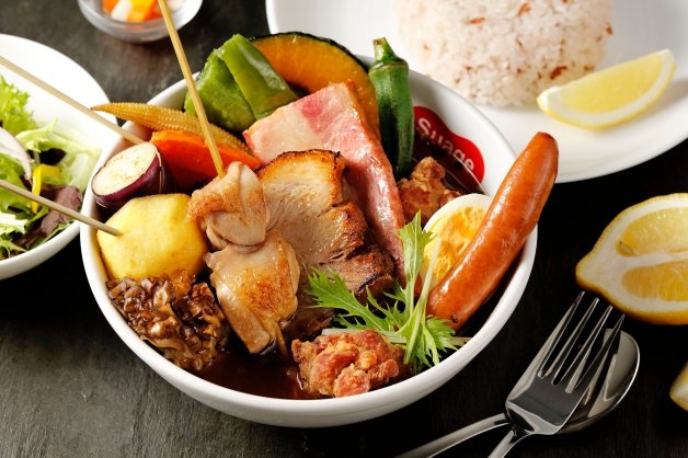 肉食主義必點的「Suage Special湯咖哩」,一次集結「脆皮雞肉串」、「唐揚雞塊」、「炙燒角煮」、「厚切培根」和「德式香腸」等多種主餐,不管是酥脆的唐揚雞、炙燒的五花肉還是多汁的雞肉串等,只要點一碗就有多重享受,堪稱是「奢華肉肉組合」也不為過!