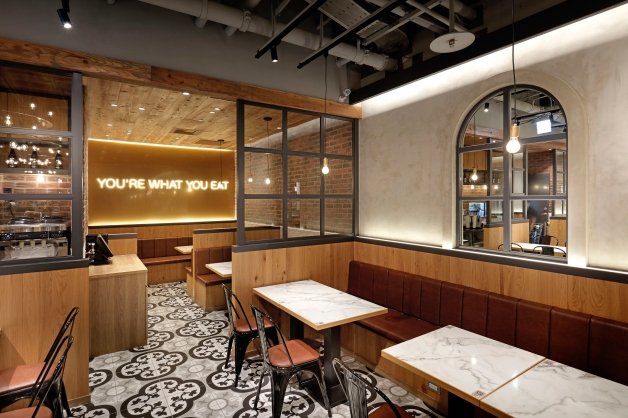 北海道湯咖哩Suage的取名來自於日文「素炸」的發音,意指食物不沾任何粉和漿直接下鍋裸炸,這樣的烹調手法能夠直接品嘗到食材濃縮的鮮美,首店位在「台北統一時代店B2」,風格陳設延續日本店舖設計,整體主色調為「暮色橘」和「木質調」進行搭配,桌面則使用大理石材質,地板以老花磁磚妝點,總坪數落在33.74坪,約有66個席位!