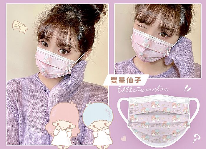 雙星仙子又名雙子星,這對可愛的雙胞胎原來有自己的名字,藍色頭髮的弟弟是Kiki,則粉紅色頭髮的姐姐是Lala,你們家也有對可愛的雙胞胎寶寶嗎?全家大小一起戴上雙星仙子口罩吧。