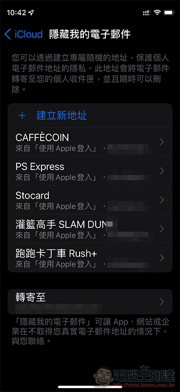 這裡的好處是在於,如果哪天你覺得想要取消這個網站或服務的信件訂閱時,除了可以到該網站取消訂閱外,也能更簡單地透過 iOS 15 / iPadOS 15 / macOS Monterey 開始導入的這項 iCloud+ 功能,來直接取消轉寄。所以可以視為一種更主動退訂的概念(XD)。