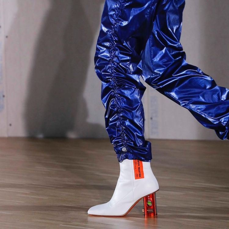 這次 Gentle Monster 的聯名,你會看到一個工業感十足的水平儀出現在鏡框上,其元素其實是來自於 2020 年 Heron Preston 在一雙跟鞋上的設計,當時他便將水平儀呈現於鞋跟上,讓一雙優雅的高跟鞋變得超級有個性!